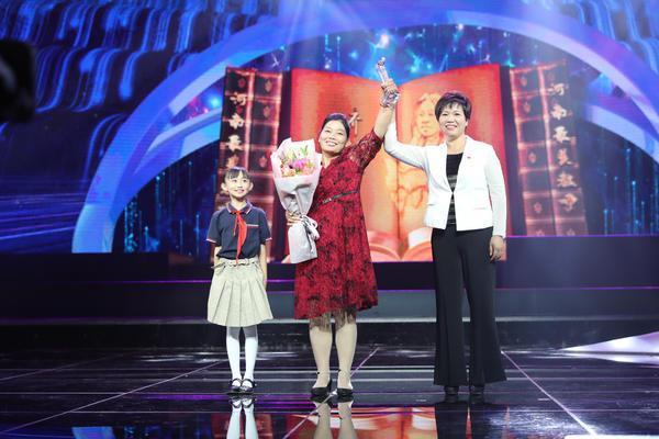 當(dāng)李芳老師的愛人與女兒走上舞臺時,臺下爆發(fā)出熱烈的掌聲;被李芳老師救下的四名學(xué)生為他們獻上鮮花,并將獎杯放在花團錦簇的領(lǐng)獎臺上,舞臺上,孩子們朝著空空的領(lǐng)獎臺深深地鞠躬,舞臺下,觀眾們的眼淚在眼眶中轉(zhuǎn)了又轉(zhuǎn)。
